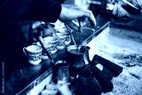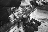 Cooking fresh aromatic traditional Turkish coffee on charcoal. Traditional turkish cuisine.