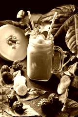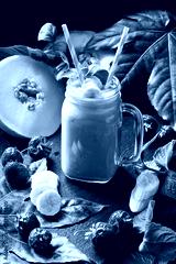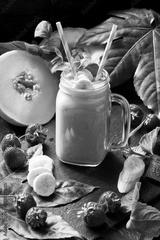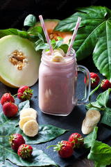Healthy beverage - fresh blended fruit smoothie in glass mason jar
