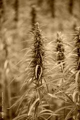 Marijana plant. Hemp field with cannabis ready for harvest.