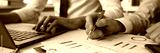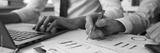 Group of people hold in arms financial papers