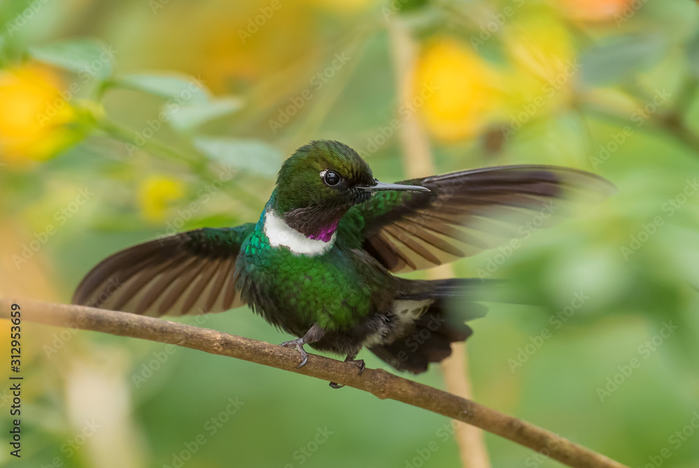 Gorgeted Sunangel - Heliangelus strophianus, beautiful small hummingbird from western Andean slopes, Mindo, Ecuador.