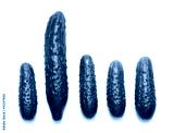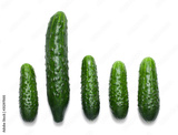 One big and four small cucumbers with pipmples isolated