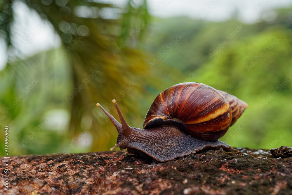 Giant African Land Snail - Achatina fulica large land snail in Achatinidae, similar to Achatina achatina and Archachatina marginata, pest issues, invasive species of snail