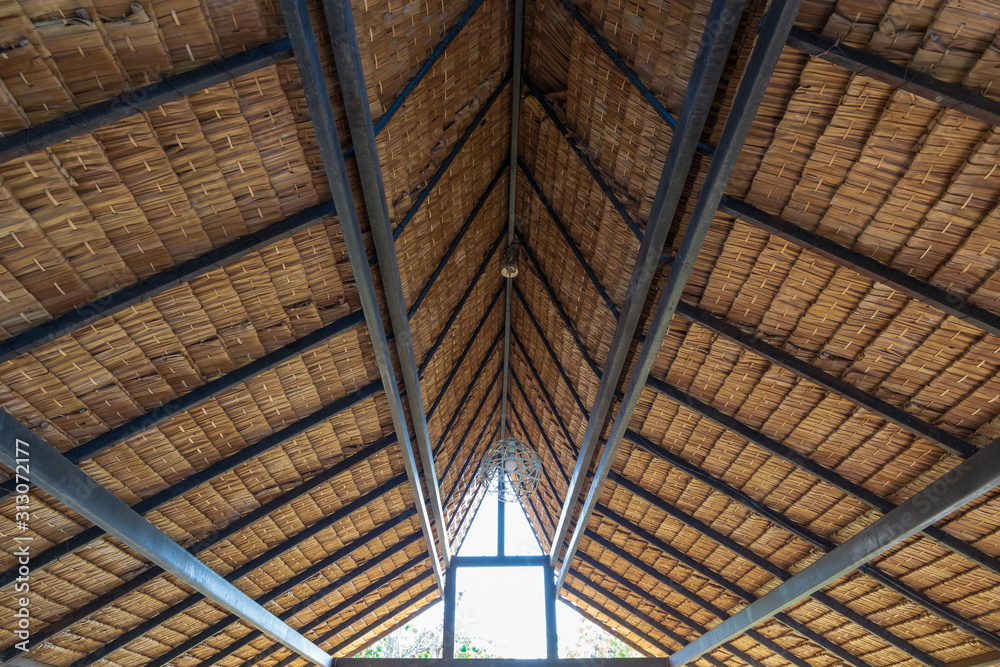 Structure of bamboo huts. Bamboo hut. Bamboo huts for living. The part of the roof is made of bamboo.