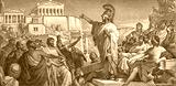 Pericles Funeral Oration on old Greece 50 drachma (1955) banknote. Famous historical speech of Pericles at the end of first year of the Peloponnesian War.