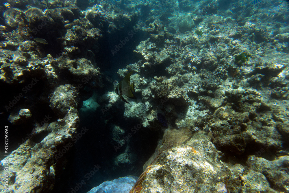 A bat fish swimming in the sea