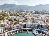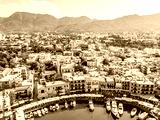Aerial view of Sea port and Old Town of Kyrenia (Girne) is a city on the north coast of Cyprus.