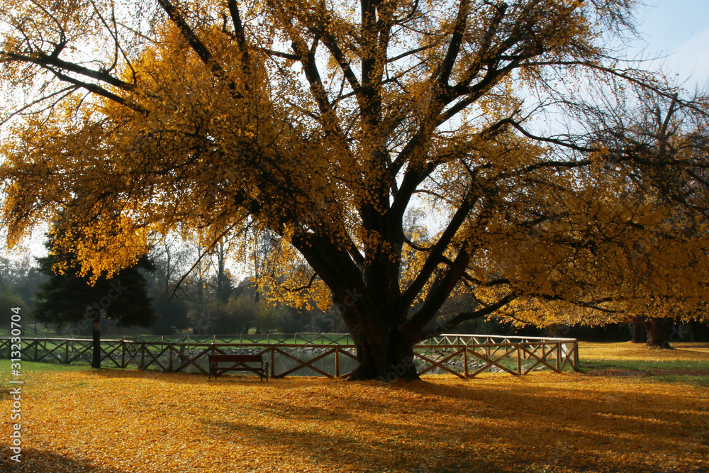 Albero di Ginkgo biloba in autunno