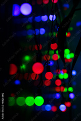 Multi-colored glare from garlands in the form of abstraction in the dark