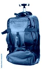 Blue valise with red insertion