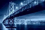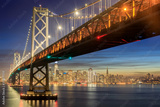 Western Span of San Francisco-Oakland Bay Bridge and San Francisco Waterfront in Blue Hour. Shot from Yerba Buena Island, San Francisco, California, USA.