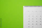 close up of calendar on the green table, planning for business meeting or travel planning concept