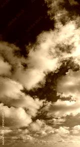 Fantastic clouds against blue sky, panorama
