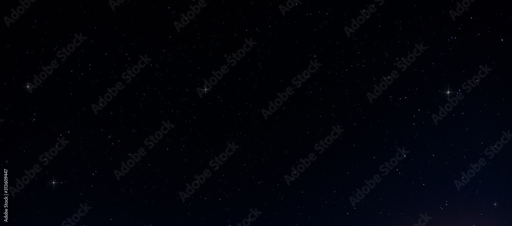 Panorama blue night sky milky way and star on dark background.Universe filled with stars, nebula and galaxy with noise and grain.Photo by long exposure and select white balance.selection focus.amazing