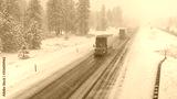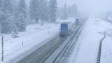 Trucks haul containers across the state of Washington and through a snowstorm.
