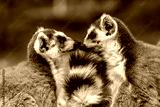 Two ring tailed lemurs face to face (Lemur catta), Isalo National Park, Madagascar