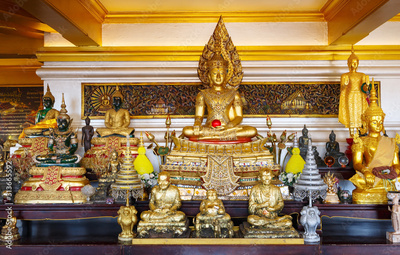 Buddha statues at Wat Saket. Temple of the Golden mountain, Bangkok, Thailand.