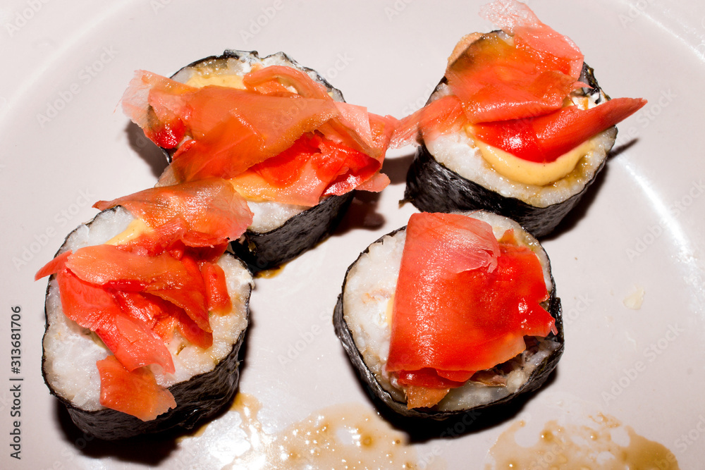 Sushi.Homemade sushi.Background of the sushi.The preparation of sushi at home.