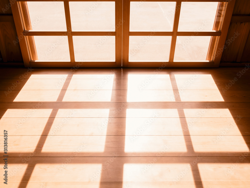 Wooden Floor and Door frame with lighting Japanese style room Interior details