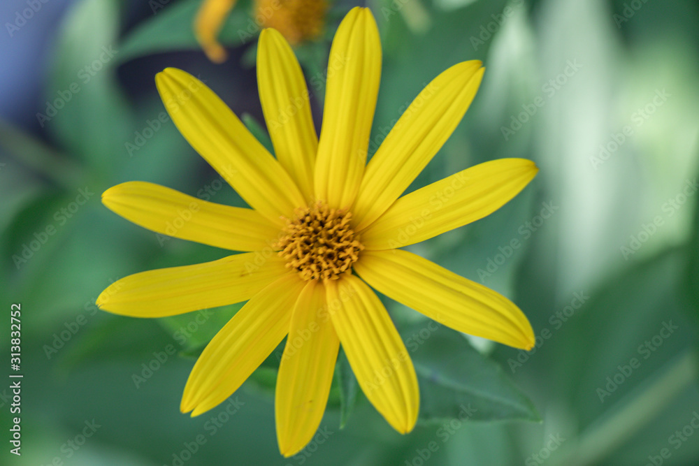 Selective focus The Jerusalem artichoke flower. (Helianthus tuberosus)Also called Sunroot, Sunchoke, or Earth apple.