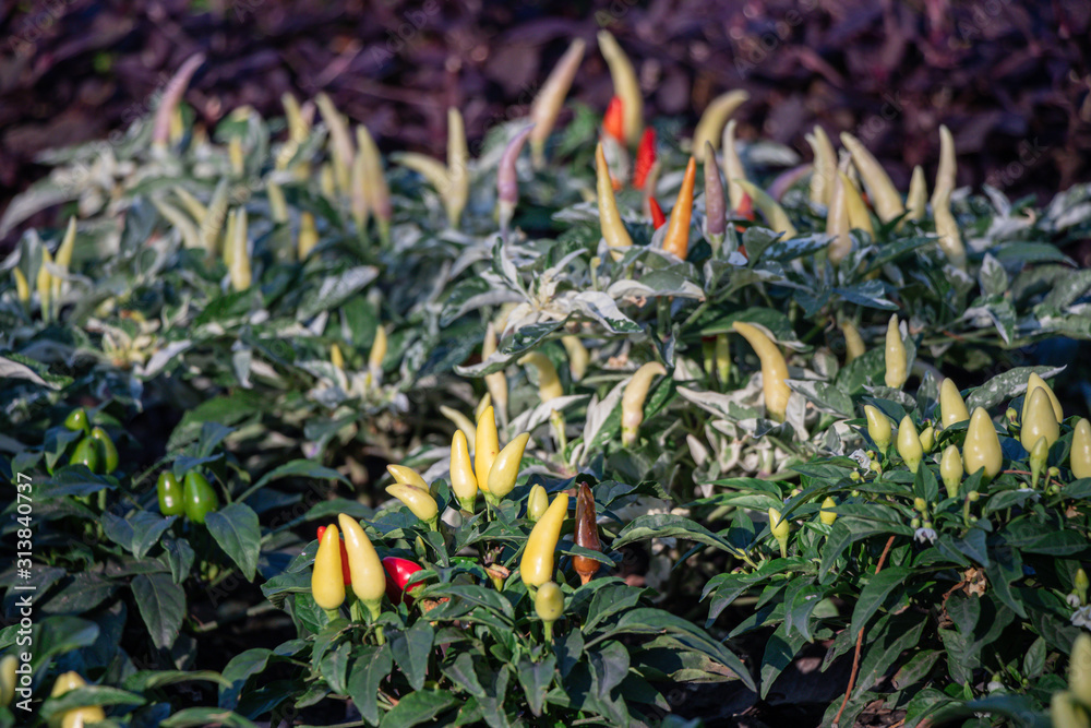 Colorful Chili paper and ripe on tree.Capsicum Frutescens tree.(Bird Chili)