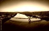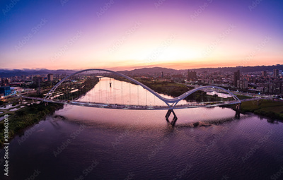 Crescent Bridge - landmark of New Taipei, Taiwan with beautiful illumination at day, aerial photography in New Taipei, Taiwan.