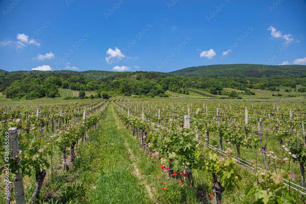 green vineyards rows