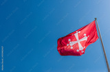 Pisan Cross, the official flag of Pisa province in Italy against blue sky