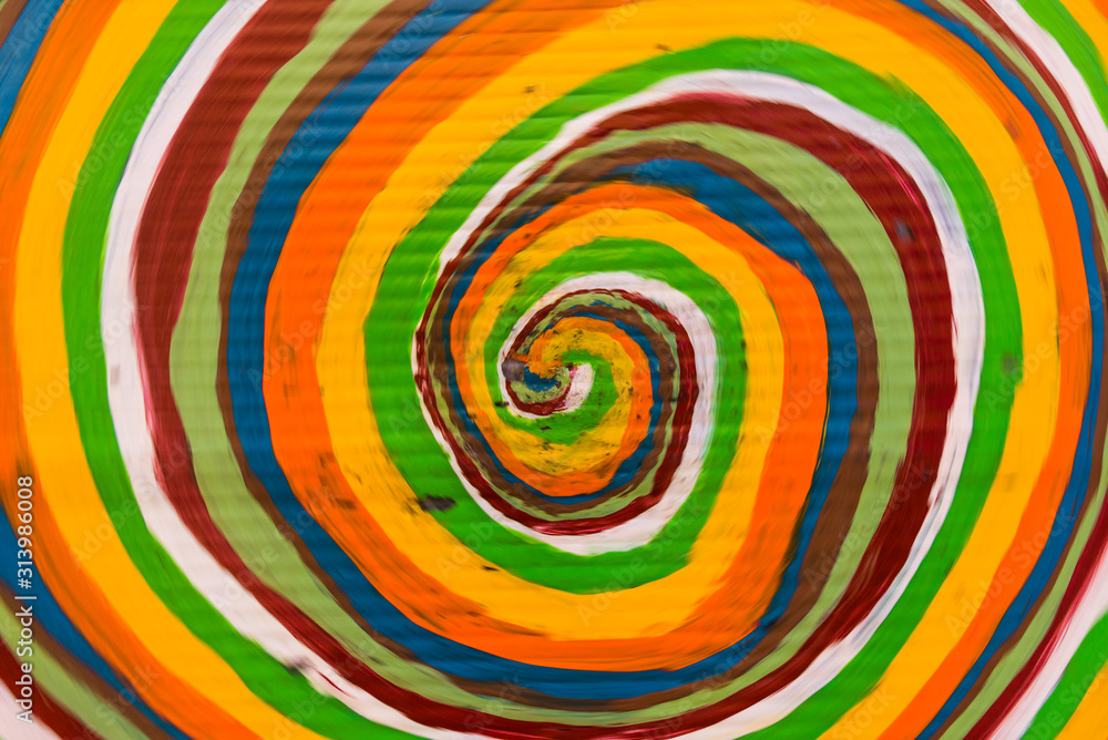 Abstract background of colorful lollipop spiral. Selective focus at the centre of the image.