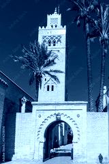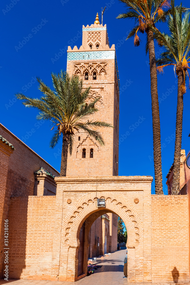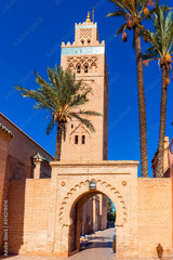 Koutoubia Mosque on a background of blue sky, Marrakesh, Morocco. Vertical.