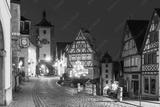 Decorated and illuminated Christmas street with gate and tower Plonlein in medieval Old Town of Rothenburg ob der Tauber, Bavaria, southern Germany