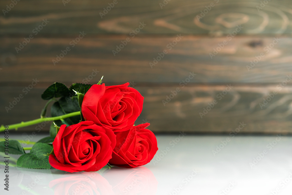 Red roses on table with copy space
