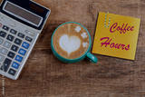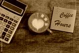 Paper note with good morning text and Hot Coffee Latte Art Heart on color background.