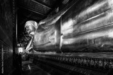 famous golden reclining buddha statue at wat pho bangkok thailand in black and white