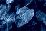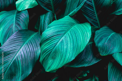 leaves of Spathiphyllum cannifolium, abstract green texture, nature background, tropical leaf