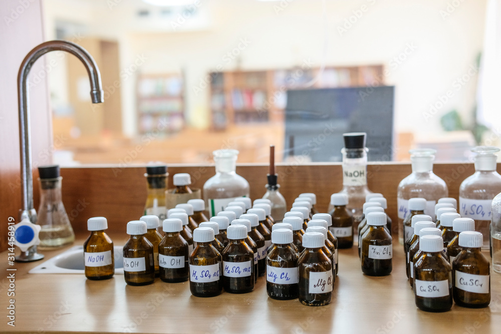 image of chemical equipment at a school desk