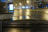 Moscow, Russia - December, 23, 2019: image of a bus traveling in Moscow at night