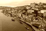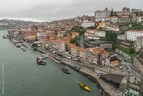 Porto old town riverside aerial promenade in Portugal. Picturesque old houses among the Douro River