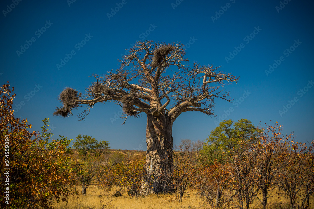 Kruger National Park, South Africa- JULY 2019: An ancient baobab east of Punda Maria