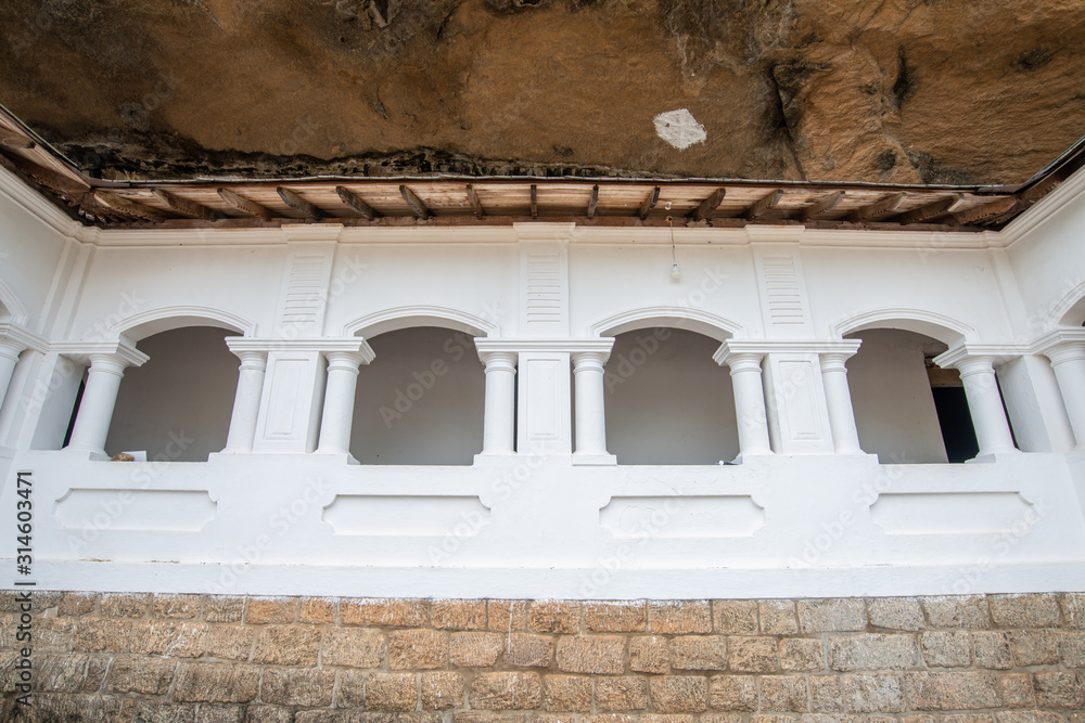 The exterior view of Dambulla cave temple a sacred pilgrimage site for 22 centuries, best preserved cave temple complex in Sri Lanka. One of famous UNESCO world heritage site in Sri Lanka.