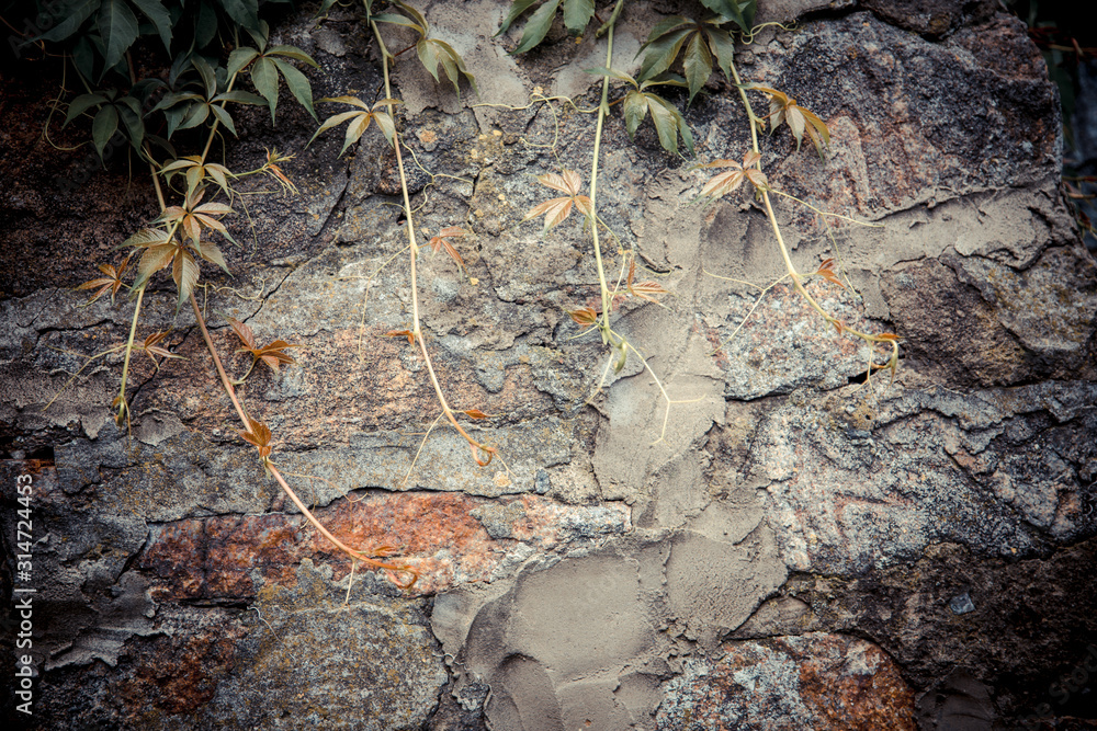 ivy covered stone wall, texture