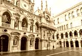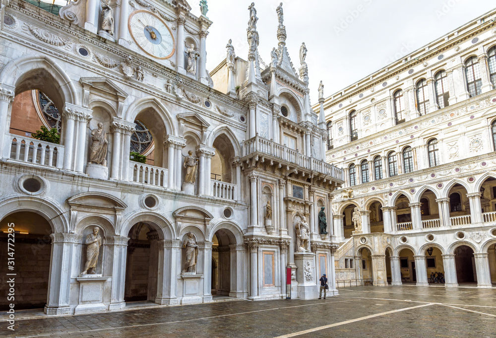 Doge`s Palace or Palazzo Ducale in summer, Venice, Italy. It is famous landmark of Venice. Panoramic view of luxury courtyard of old Doge`s Palace.