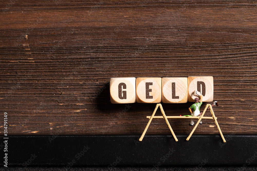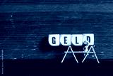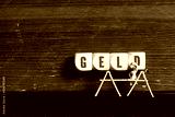 Würfel mit Aufschrift "Geld" auf Holzuntergrund