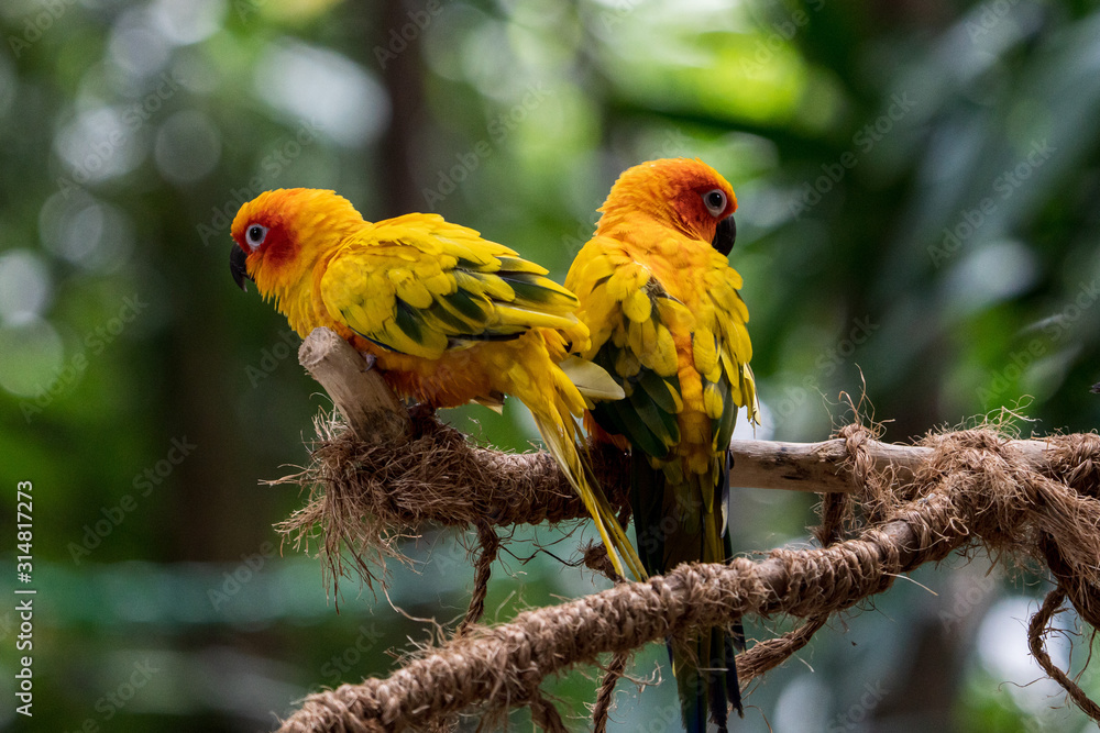 A pair of colorful Sun Parakeet
