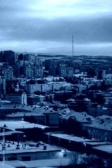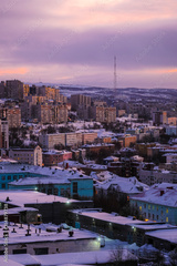 Murmansk, Russia - January, 5, 2020: landscape with the .image of Murmansk, the largest city in the Arctic, during the polar night