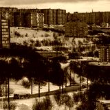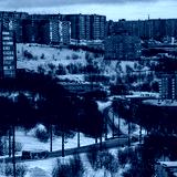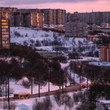 Murmansk, Russia - January, 5, 2020: landscape with the .image of Murmansk, the largest city in the Arctic, during the polar night
