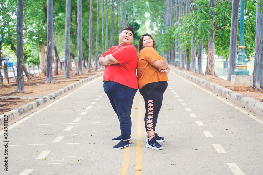 Fat Asian couple posing and looking each other