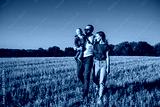 Happy Young Family Mom and Dad with Their Little Son Enjoying Summer Weekend Picnic Outside the City in the Field at Sunny Day Sunset, Vacation Time Concept