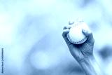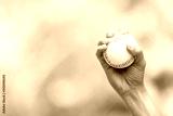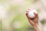 Close up of player's hand holding baseball, sport concept