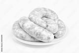 Raw Sausages, Oktoberfest Sausages close-up, isolated on white background.